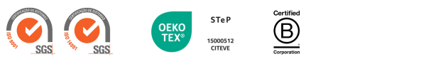 ISO 9001, ISO 14001, OEKO-TEX® STeP, B Corp and BCI Member